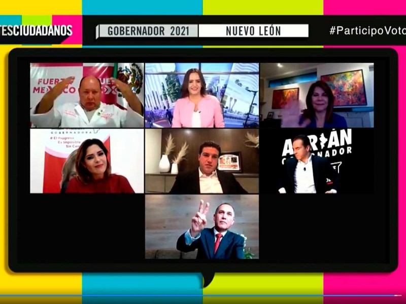 En el debate estuvieron presentes Fernando Larrazabal candidato del PAN, Clara Luz Flores de Morena, Adrián de la Garza del PRI, Samuel García de Movimiento Ciudadano, Emilio Jacques de Fuerza Por México, Daney Siller de RSP y Carolina Garza del PES.