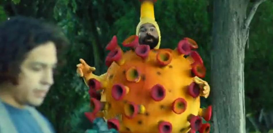 El disfraz es cien por cien telechuvi o bien (para los más mayores) Odisea Burbujas, aunque el mensaje es claro: el gobierno de la República pide a la población cuidarse, pensar en la salud como principal barrera contra el Covid: