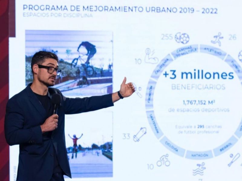 Destacó que actualmente se han entregado más de 630 espacios en materia deportiva que no tenían los municipios, espacios que equivalen a 295 canchas de fútbol profesional, distribuidas en canchas de básquetbol, voleibol, frontón, entre otras.