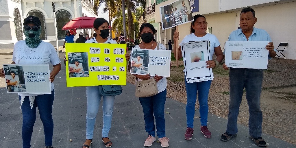 Frente al Palacio de Gobierno y luego en el parque Juárez, se mostraron en contra de la resolución de la Comisión Estatal de Derechos Humanos (CEDH) en el sentido de que no hubo tortura en su contra.