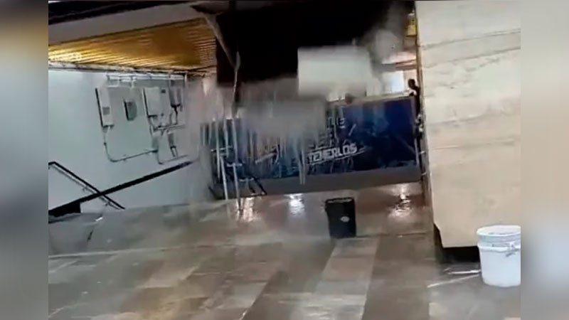 En los videos que circulan en Twitter y TikTok se puede observar los encharcamientos y filtraciones en la estación del Metro, con cubetas negras en varios puntos dejan ver como colapsa el techo de de la Línea 3.