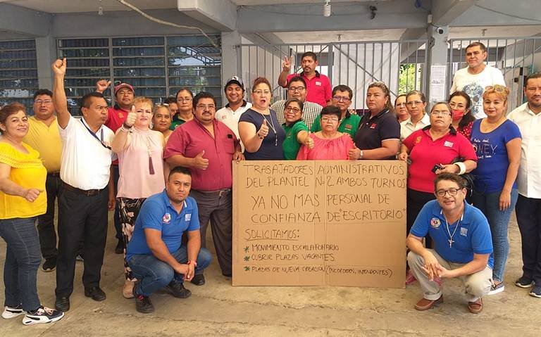 Trabajadores Administrativos del Colegio de Bachilleres de Tabasco, Plantel No. 2, realizaron esta tarde una protesta, debido a que la Dirección General mandó personal de confianza para ocupar lugares que podrían ser para sindicalizados.