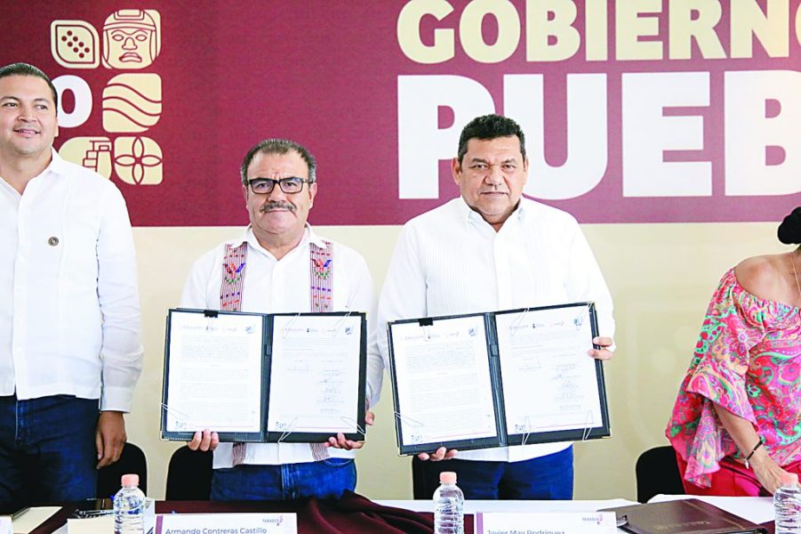 El gobernador Javier May y el director general del INEA firmaron convenio Alfabetizar para el Bienestar.